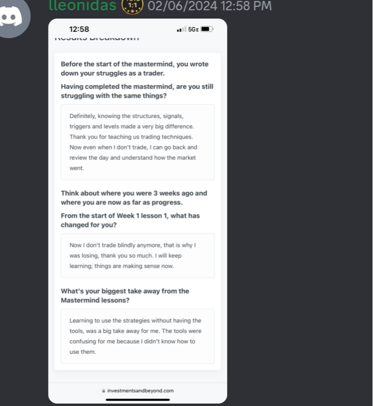 ...But after 4 weeks of the mastermind during our exit assessment, the progress is....